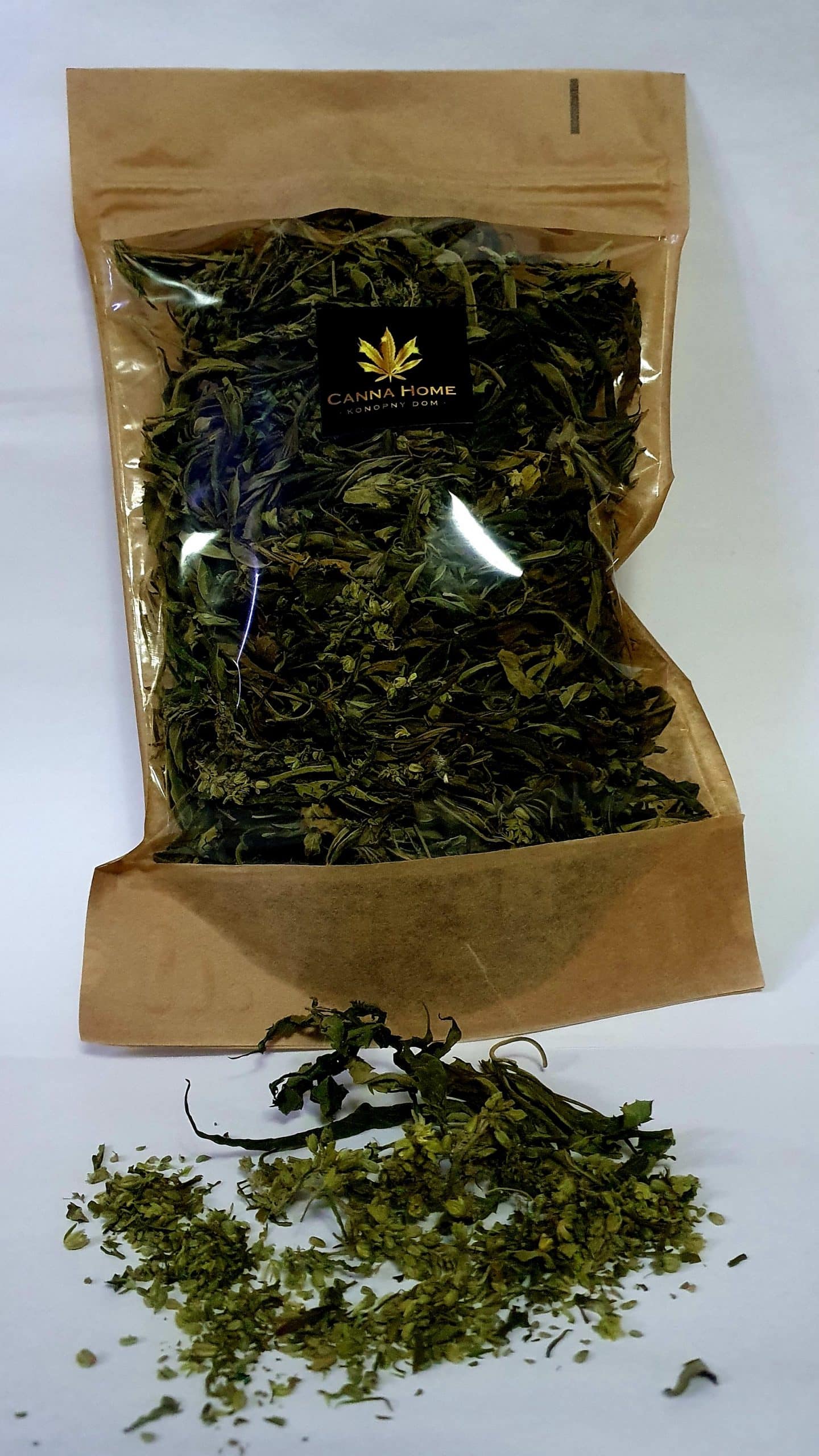 Zawartość opakowania: cała wiecha konopna oddzielona od łodygi (liścia, kwiaty, nasiona)