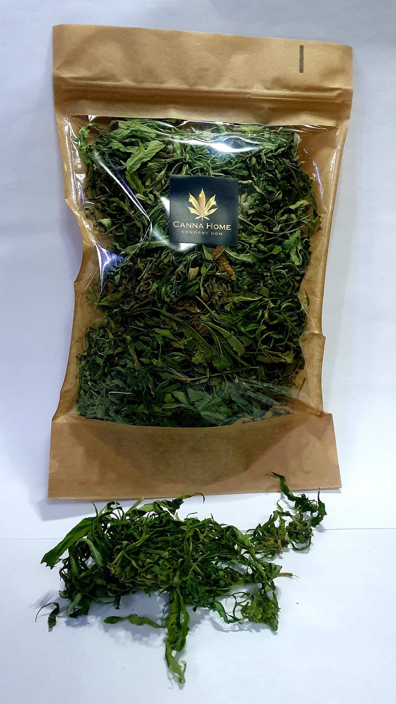 Zawartość opakowania: cała wiecha konopna oddzielona od łodygi (liście, kwiaty, nasiona)